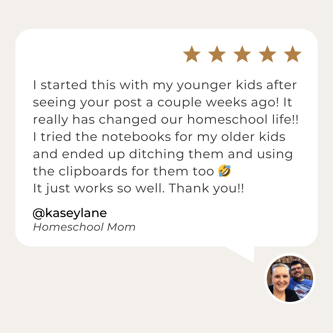 Get your Homeschool Clipboard System guide (and pre-made templates) in our shop, or create your own version with as many or as few tasks as you want (you don’t even have to fill the whole thing!), then print and start!